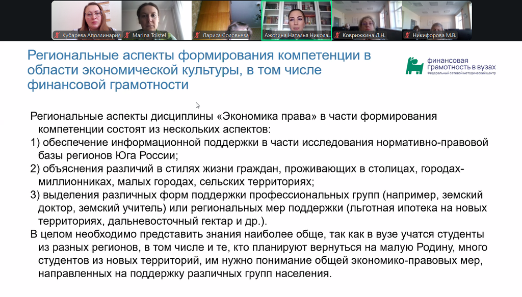 18-20 марта 2026 года состоялась итоговая аттестация слушателей четвертого потока программы повышения квалификации «Разработка и реализация рабочих программ дисциплин/модулей для формирования универсальной компетенции в области экономической культуры, в том числе финансовой грамотности» (набор 2026-1).