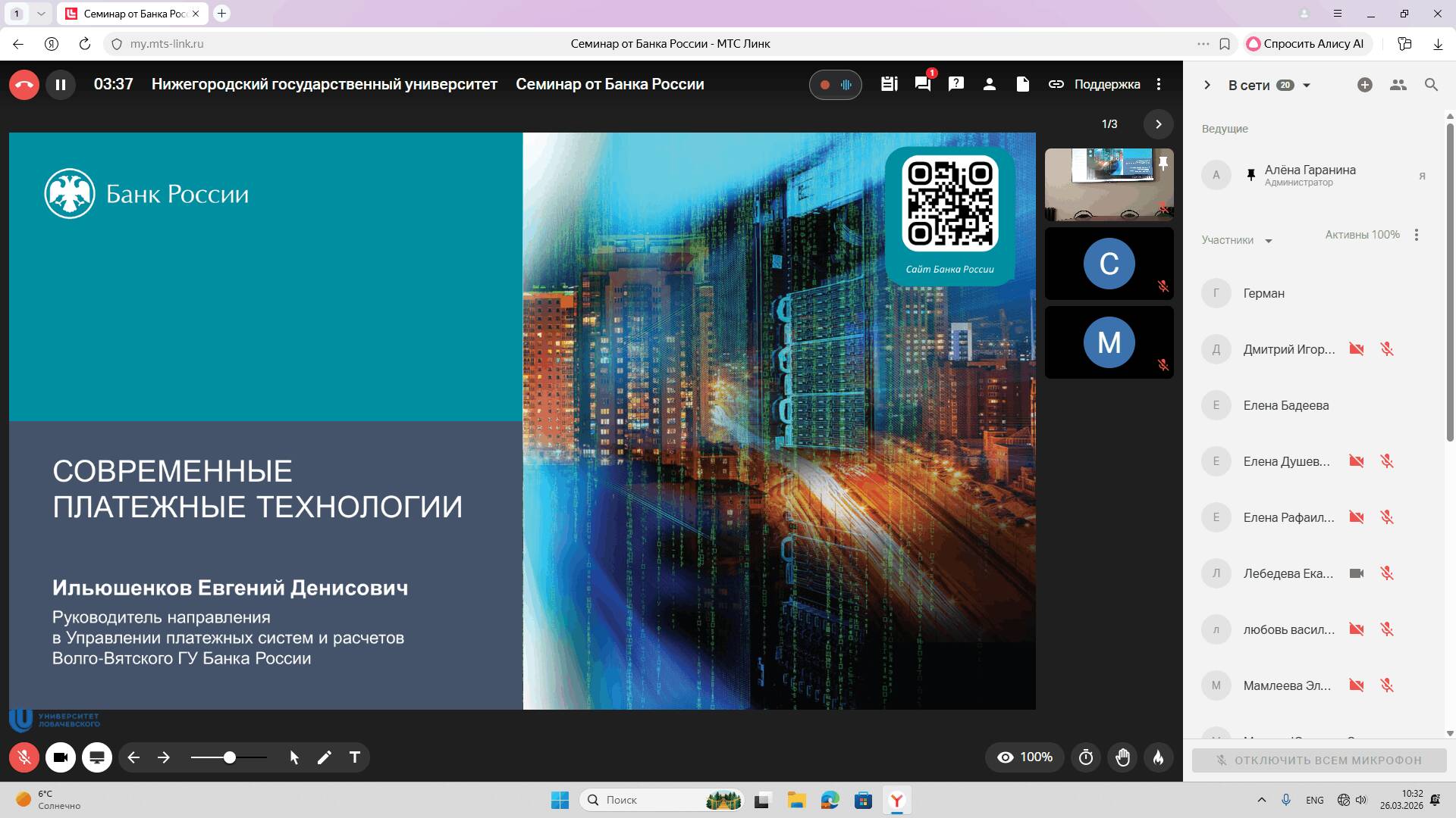 26 марта 2026 года в Институте экономики ННГУ им. Н.И. Лобачевского при поддержке Волго-Вятского главного управления Банка России прошел семинар, посвященный финансовой грамотности и современным платежным системам. Мероприятие прошло в смешанном формате, в дистанционном режиме подключились преподаватели вузов ПФО.